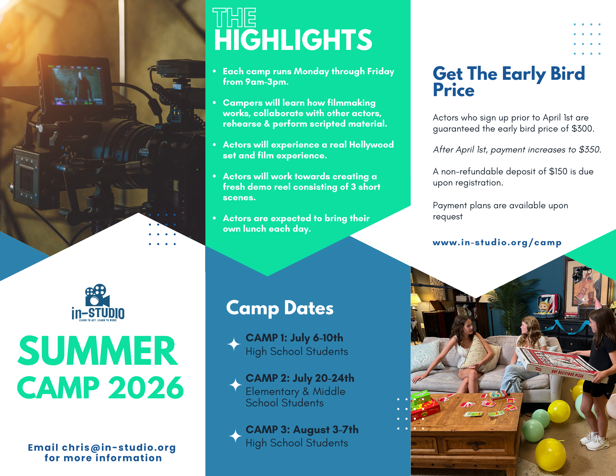 Contact chris@in-studio.org with any camp questions or to set up a payment plan.